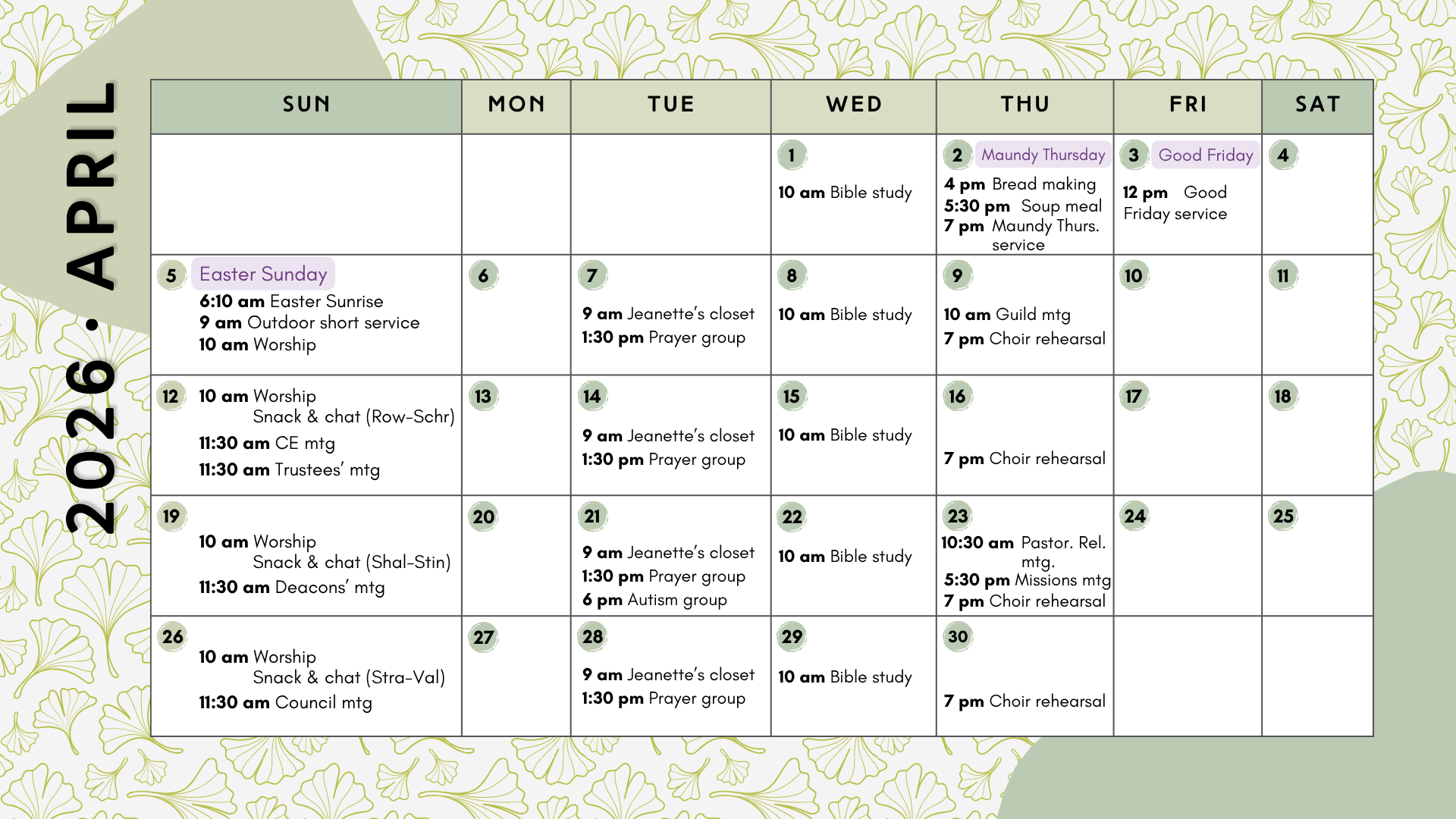 First Church Calendar